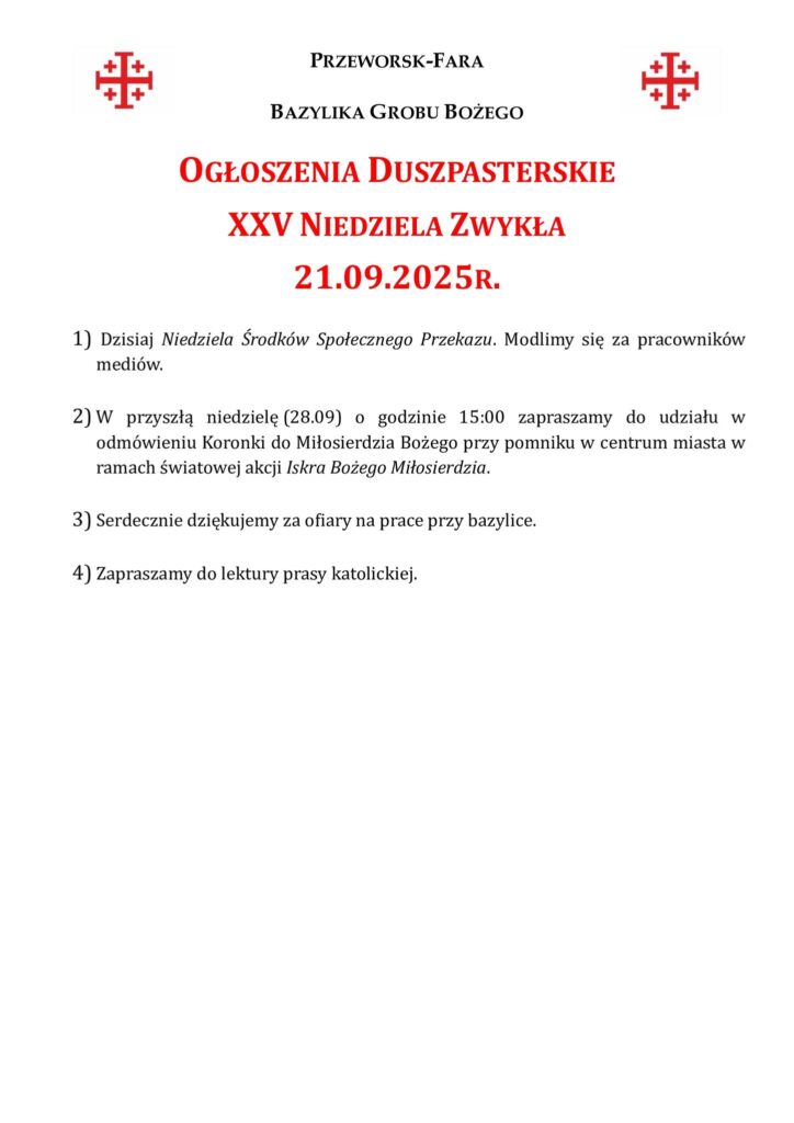 XXV Niedziela Zwykła 21.09.2025
