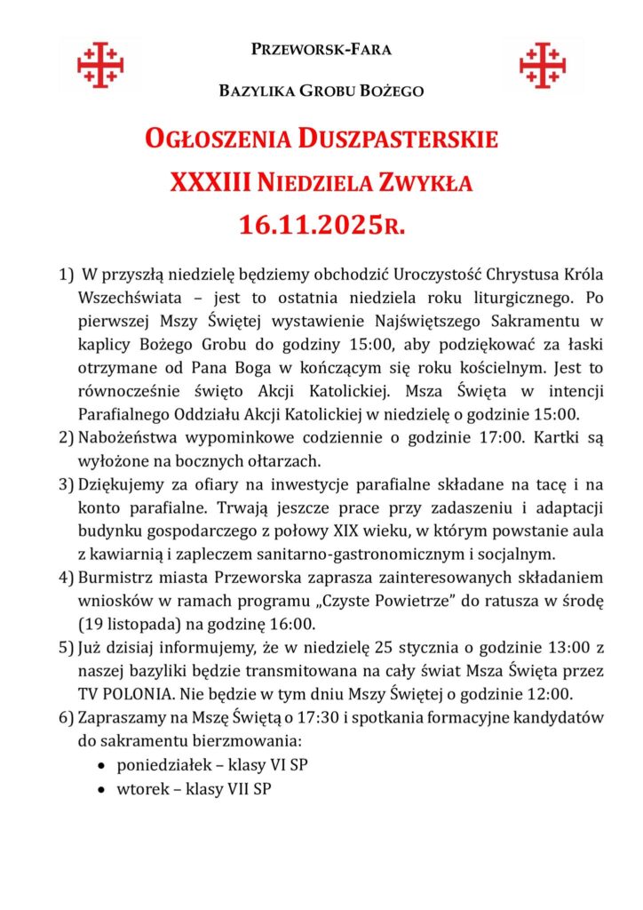 XXXIII Niedziela Zwykła 16.11.2025