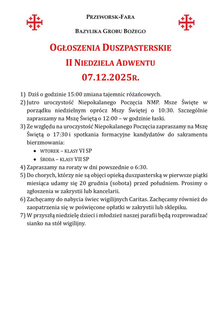 II Niedziela Adwentu 07.12.2025