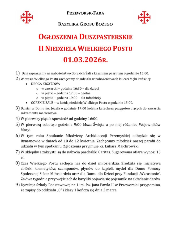 II Niedziela Wielkiego Postu 01.03.2026