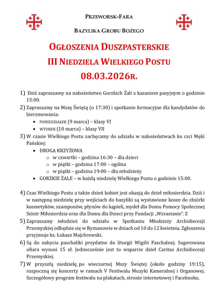 III Niedziela Wielkiego Postu 08.03.2026