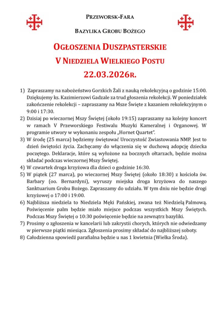 V Niedziela Wielkiego Postu 22.03.2026